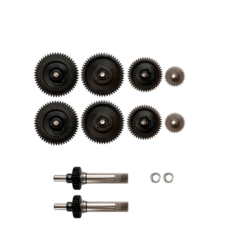 - Ocelové ozubené kola/pastorky, levé a pravé, 1:4, dlouhá hřídel