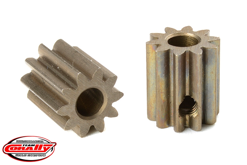 Krátké provedení, materiál tvrzená ocel, 10 zubů, modul ozubení 0.6M. Pro hřídel motoru o průměru 3.17 mm (1/8 in). Pastorky TEAM CORALLY jsou vyráběny frézováním a následně tvrzeny, čímž je zajištěna vysoká přesnost ozubení. Všechny pastorky TEAM CORALLY jsou vyrobeny v EU.