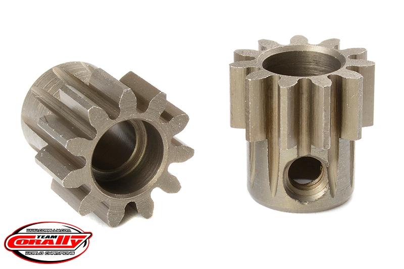 Krátké provedení, materiál tvrzená ocel, 11 zubů, modul ozubení M1.0. Pro hřídel motoru o průměru 5,0 mm. Pastorky TEAM CORALLY jsou vyráběny frézováním a následně tvrzeny, čímž je zajištěna vysoká přesnost ozubení. Všechny pastorky TEAM CORALLY jsou vyrobeny v EU.