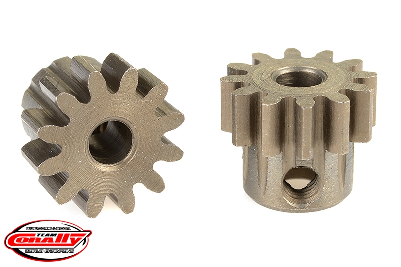 Krátké provedení, materiál tvrzená ocel, 12 zubů, modul ozubení 32DP. Pro hřídel motoru o průměru 3.17 mm (1/8 in). Pastorky TEAM CORALLY jsou vyráběny frézováním a následně tvrzeny, čímž je zajištěna vysoká přesnost ozubení. Všechny pastorky TEAM CORALLY jsou vyrobeny v EU.