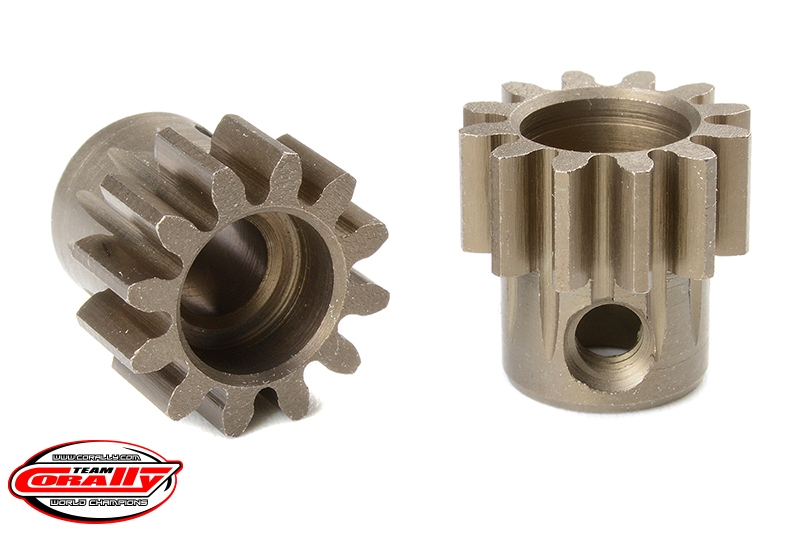 Krátké provedení, materiál tvrzená ocel, 12 zubů, modul ozubení M1.0. Pro hřídel motoru o průměru 5,0 mm. Pastorky TEAM CORALLY jsou vyráběny frézováním a následně tvrzeny, čímž je zajištěna vysoká přesnost ozubení. Všechny pastorky TEAM CORALLY jsou vyrobeny v EU.