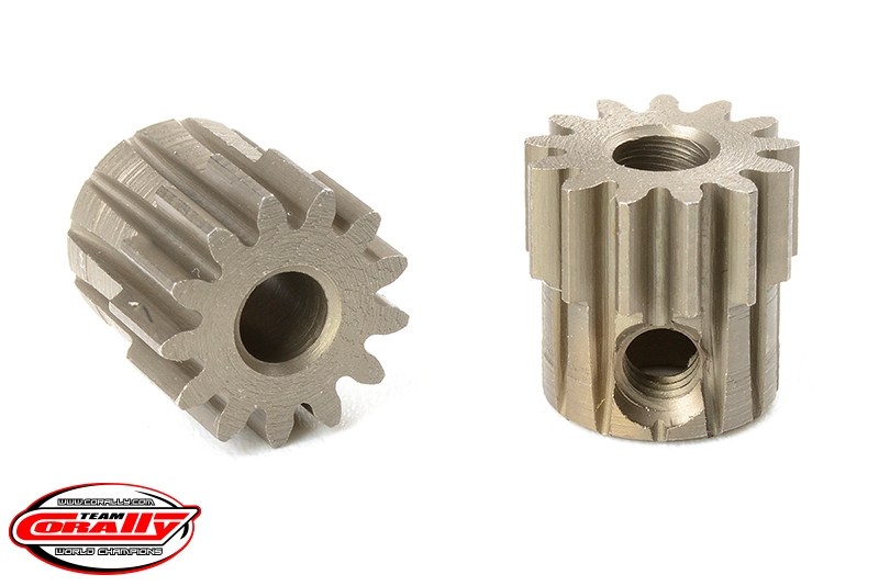 Krátké provedení, materiál tvrzená ocel, 13 zubů, modul ozubení 0.6M. Pro hřídel motoru o průměru 3.17 mm (1/8 in). Pastorky TEAM CORALLY jsou vyráběny frézováním a následně tvrzeny, čímž je zajištěna vysoká přesnost ozubení. Všechny pastorky TEAM CORALLY jsou vyrobeny v EU.