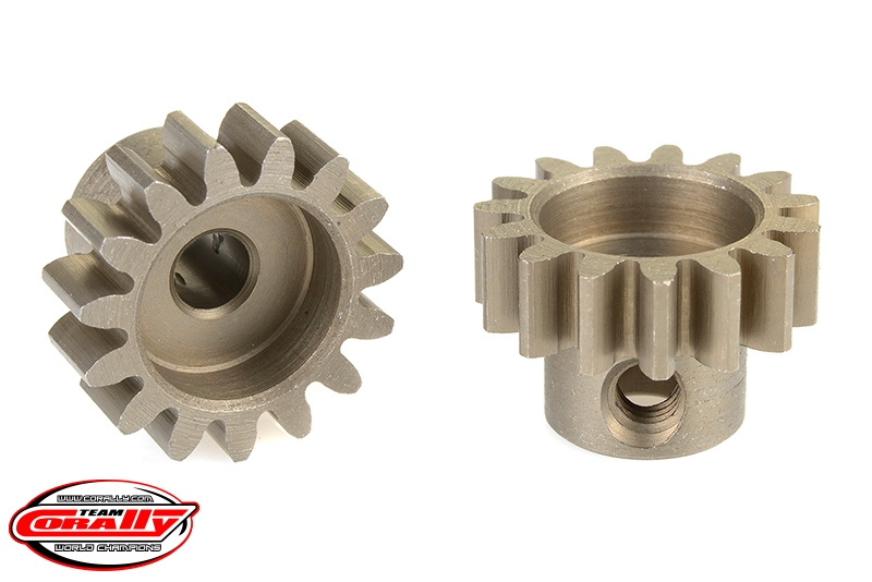 Krátké provedení, materiál tvrzená ocel, 15 zubů, modul ozubení 32DP. Pro hřídel motoru o průměru 3.17 mm (1/8 in). Pastorky TEAM CORALLY jsou vyráběny frézováním a následně tvrzeny, čímž je zajištěna vysoká přesnost ozubení. Všechny pastorky TEAM CORALLY jsou vyrobeny v EU.