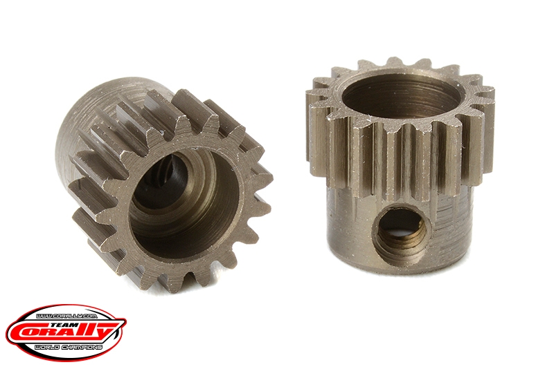 Krátké provedení, materiál tvrzená ocel, 17 zubů, modul ozubení 48DP. Pro hřídel motoru o průměru 3.17 mm (1/8 in). Pastorky TEAM CORALLY jsou vyráběny frézováním a následně tvrzeny, čímž je zajištěna vysoká přesnost ozubení. Všechny pastorky TEAM CORALLY jsou vyrobeny v EU.