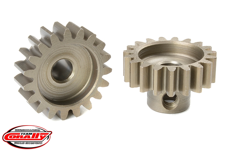 Krátké provedení, materiál tvrzená ocel, 19 zubů, modul ozubení M1.0. Pro hřídel motoru o průměru 5,0 mm. Pastorky TEAM CORALLY jsou vyráběny frézováním a následně tvrzeny, čímž je zajištěna vysoká přesnost ozubení. Všechny pastorky TEAM CORALLY jsou vyrobeny v EU.