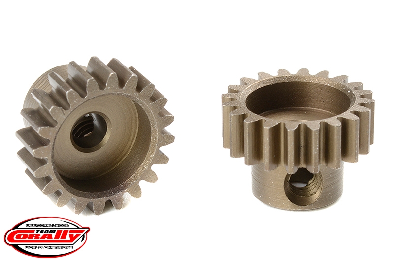 Krátké provedení, materiál tvrzená ocel, 20 zubů, modul ozubení 0.6M. Pro hřídel motoru o průměru 3.17 mm (1/8 in). Pastorky TEAM CORALLY jsou vyráběny frézováním a následně tvrzeny, čímž je zajištěna vysoká přesnost ozubení. Všechny pastorky TEAM CORALLY jsou vyrobeny v EU.