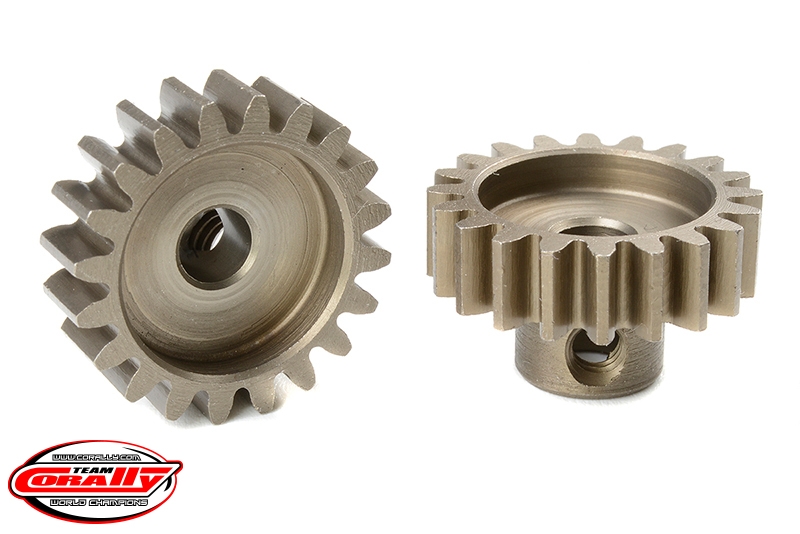 Krátké provedení, materiál tvrzená ocel, 20 zubů, modul ozubení M1.0. Pro hřídel motoru o průměru 5,0 mm. Pastorky TEAM CORALLY jsou vyráběny frézováním a následně tvrzeny, čímž je zajištěna vysoká přesnost ozubení. Všechny pastorky TEAM CORALLY jsou vyrobeny v EU.