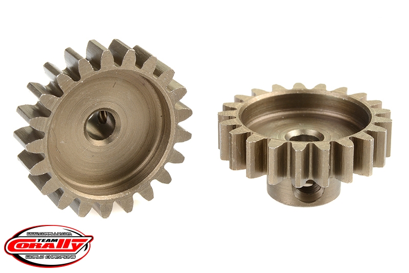 Krátké provedení, materiál tvrzená ocel, 21 zubů, modul ozubení 32DP. Pro hřídel motoru o průměru 3.17 mm (1/8 in). Pastorky TEAM CORALLY jsou vyráběny frézováním a následně tvrzeny, čímž je zajištěna vysoká přesnost ozubení. Všechny pastorky TEAM CORALLY jsou vyrobeny v EU.
