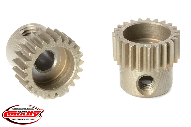 Krátké provedení, materiál tvrzená ocel, 23 zubů, modul ozubení 64DP. Pro hřídel motoru o průměru 3.17 mm (1/8 in). Pastorky TEAM CORALLY jsou vyráběny frézováním a následně tvrzeny, čímž je zajištěna vysoká přesnost ozubení. Všechny pastorky TEAM CORALLY jsou vyrobeny v EU.