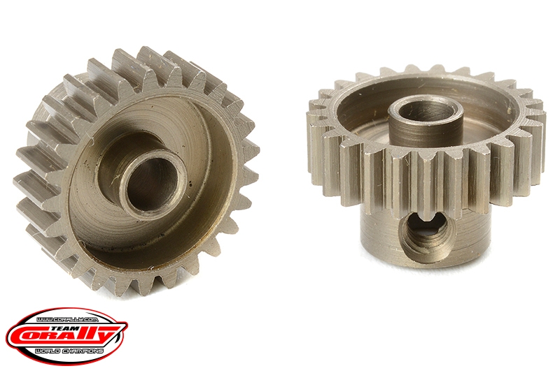 Krátké provedení, materiál tvrzená ocel, 25 zubů, modul ozubení 48DP. Pro hřídel motoru o průměru 3.17 mm (1/8 in). Pastorky TEAM CORALLY jsou vyráběny frézováním a následně tvrzeny, čímž je zajištěna vysoká přesnost ozubení. Všechny pastorky TEAM CORALLY jsou vyrobeny v EU.
