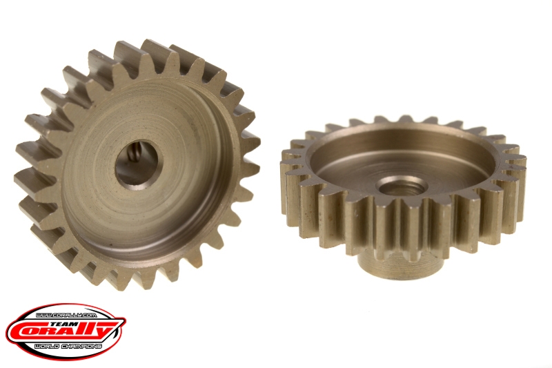 Krátké provedení, materiál tvrzená ocel, 25 zubů, modul ozubení M1.0. Pro hřídel motoru o průměru 5,0 mm. Pastorky TEAM CORALLY jsou vyráběny frézováním a následně tvrzeny, čímž je zajištěna vysoká přesnost ozubení. Všechny pastorky TEAM CORALLY jsou vyrobeny v EU.