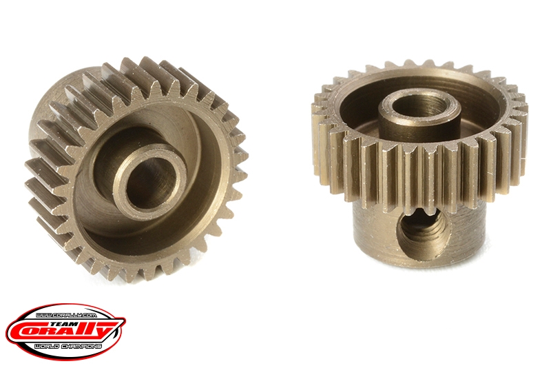 Krátké provedení, materiál tvrzená ocel, 30 zubů, modul ozubení 64DP. Pro hřídel motoru o průměru 3.17 mm (1/8 in). Pastorky TEAM CORALLY jsou vyráběny frézováním a následně tvrzeny, čímž je zajištěna vysoká přesnost ozubení. Všechny pastorky TEAM CORALLY jsou vyrobeny v EU.