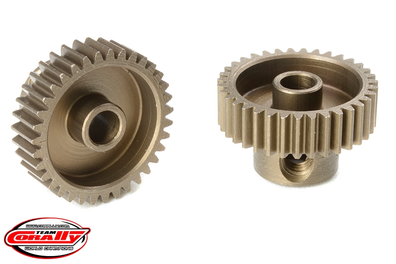 Krátké provedení, materiál tvrzená ocel, 35 zubů, modul ozubení 64DP. Pro hřídel motoru o průměru 3.17 mm (1/8 in). Pastorky TEAM CORALLY jsou vyráběny frézováním a následně tvrzeny, čímž je zajištěna vysoká přesnost ozubení. Všechny pastorky TEAM CORALLY jsou vyrobeny v EU.