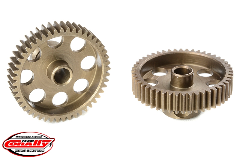 Krátké provedení, materiál tvrzená ocel, 48 zubů, modul ozubení 64DP. Pro hřídel motoru o průměru 3.17 mm (1/8 in). Pastorky TEAM CORALLY jsou vyráběny frézováním a následně tvrzeny, čímž je zajištěna vysoká přesnost ozubení. Všechny pastorky TEAM CORALLY jsou vyrobeny v EU.