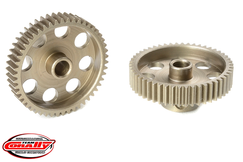 Krátké provedení, materiál tvrzená ocel, 50 zubů, modul ozubení 64DP. Pro hřídel motoru o průměru 3.17 mm (1/8 in). Pastorky TEAM CORALLY jsou vyráběny frézováním a následně tvrzeny, čímž je zajištěna vysoká přesnost ozubení. Všechny pastorky TEAM CORALLY jsou vyrobeny v EU.