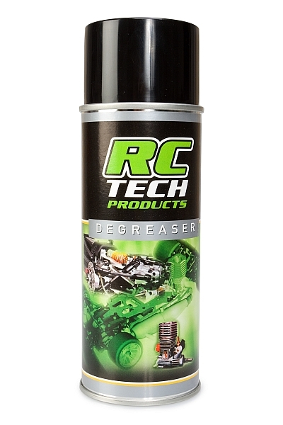 RC Tech "odmašťovač" byl vyvinut profesionálními závodníky a modeláři. Může být použit pro čištění a odmašťování všech kovových a většina syntetických a plastových dílů. Mimo jiné také k použití u elektro motorů, brzdových a závěsných dílů, kuličkových ložisek, převodových dílů jako jsou diferenciály, ozubená kola, univerzální klouby, řetězy, apod. Může být také použit jako čistící prostředek na povrchy, které je třeba pozdeji lepit.