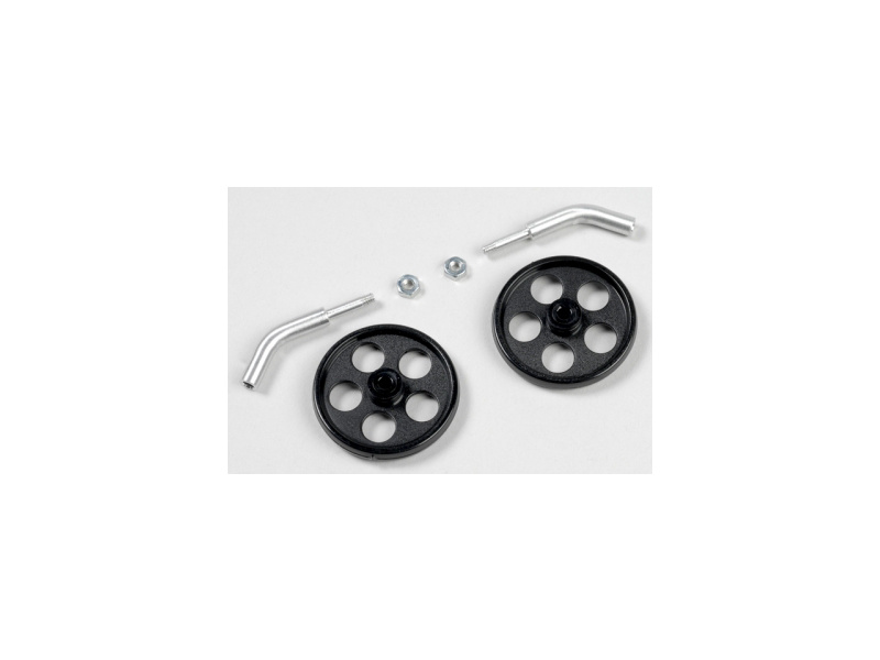 Součásti pro hlavní podvozek, osa kola s ohybem včetně kol, s otvorem pro uhlíkovou tyč o průměru 2mm (2 ks)