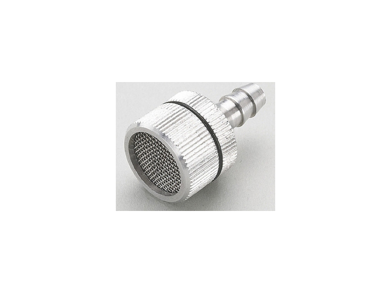 Příslušenství k palivové soustavě spalovacích motorů, hliníkové palivové bimbátko včetně filtru z kovových sítek, průměr 16mm, délka 25,5mm, koncovka hadičky 5,8/4,2mm.
