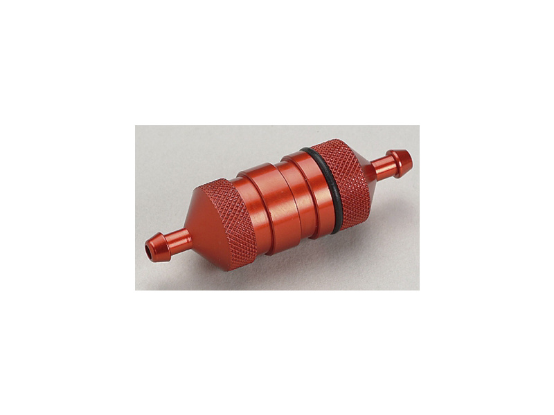 Palivový filtr velký s jemným sítkem filtru, hliníkový. Rozměry: délka celk. 40mm, průměr 19mm, hadicová koncovka 6/4,8mm, délka těla filtru cca 22mm.