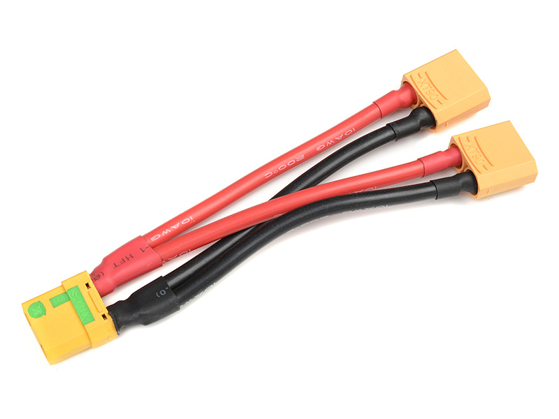 Paralelní Y-kabel s konektory XT-90 a kabely 10AWG, délka 12cm. Dva přístrojové (pro baterie) a jeden bateriový konektor Anti-Spark (do regulátoru). Vedle sebe se mohou zapojovat pouze akumulátory stejného typu, stejného napětí a stejné kapacity!