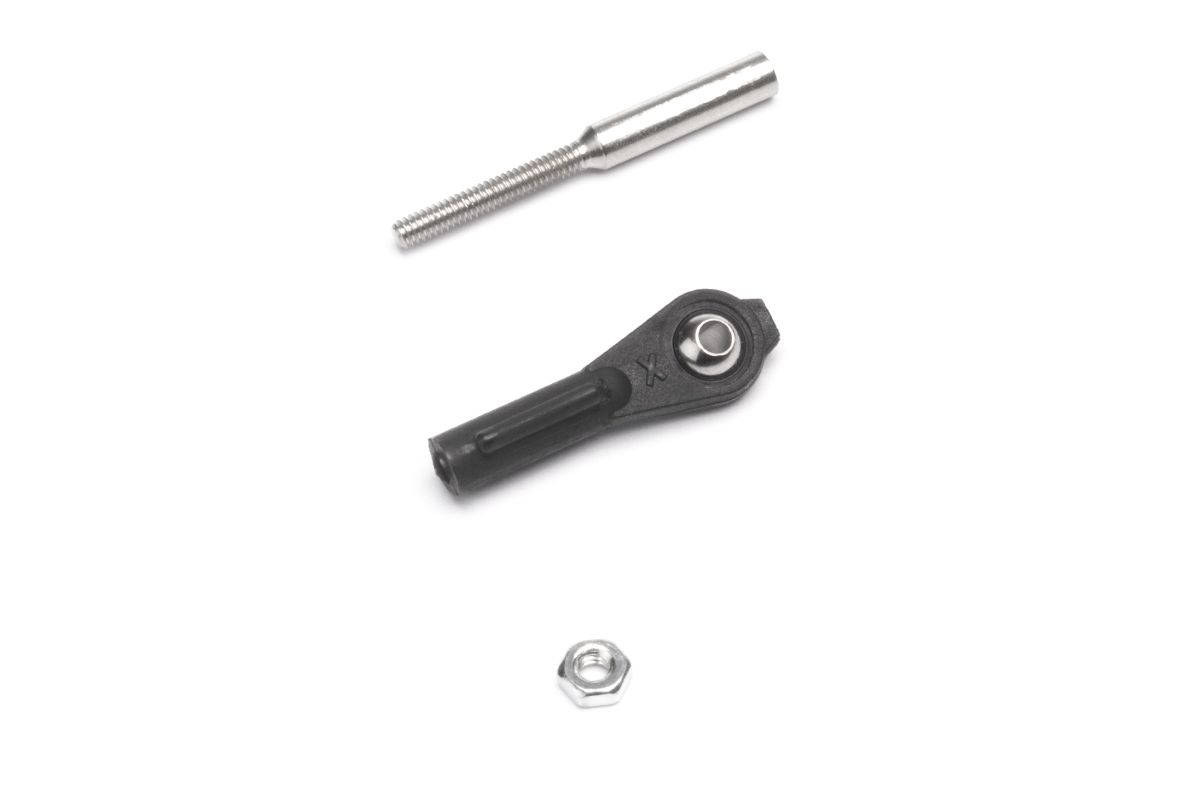 Nylonový pouzdro s kulovým čepem s otvorem 2mm pro pohyb bez tření. M2 závit v nylonovém pouzdře. Včetně ocelové spojky táhla se závitem M2 (KAV0130) a M2 matky.. Balení 2sety.