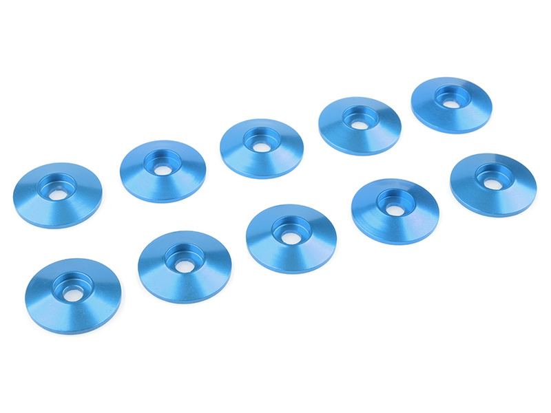 Modře eloxovaná podložka pod hlavu šroubu M3 s půlkulatou hlavou. Vnější průměr 15 mm, materiál hliník. Balení obsahuje celkem 10 ks podložek.