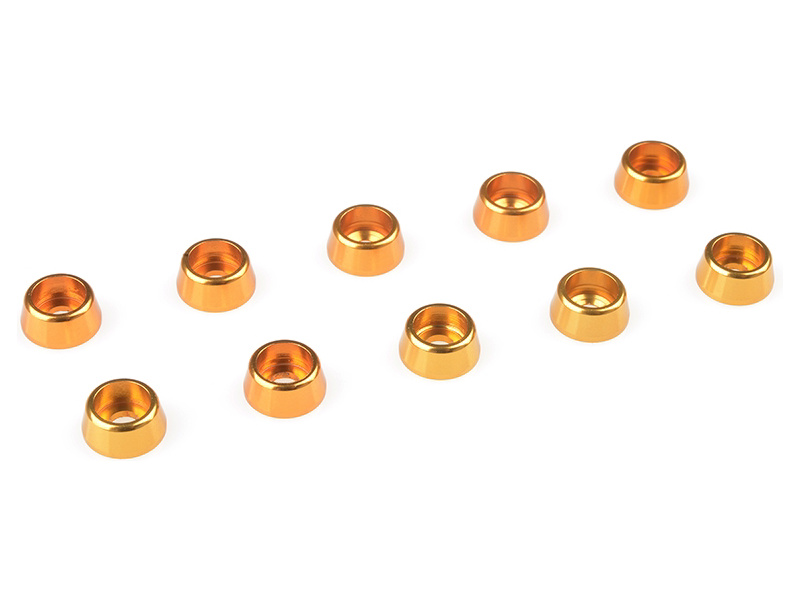 Zlatě eloxovaná podložka pod hlavu šroubu M2.5 s válcovou hlavou. Vnější průměr 7 mm, materiál hliník. Balení obsahuje celkem 10 ks podložek.