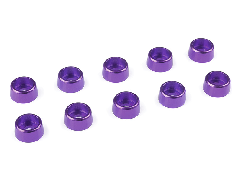 Fialově eloxovaná podložka pod hlavu šroubu M3 s válcovou hlavou. Vnější průměr 8 mm, materiál hliník. Balení obsahuje celkem 10 ks podložek.