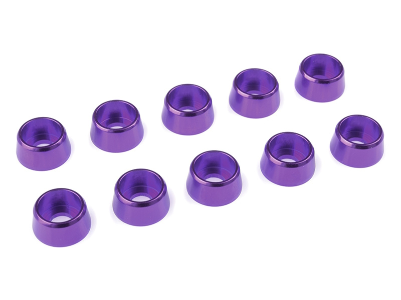 Fialově eloxovaná podložka pod hlavu šroubu M4 s válcovou hlavou. Vnější průměr 10 mm, materiál hliník. Balení obsahuje celkem 10 ks podložek.
