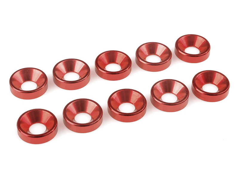 Hliníková podložka pod šroub M5 se zapuštěnou hranou. Červeně eloxovaná. Balení obsahuje 10 ks.