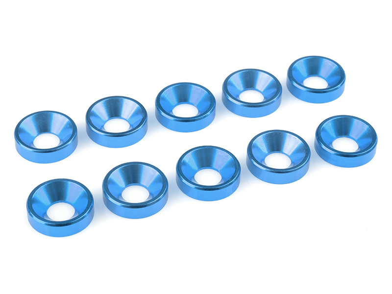 Hliníková podložka pod šroub M5 se zapuštěnou hranou. Modře eloxovaná. Balení obsahuje 10 ks.