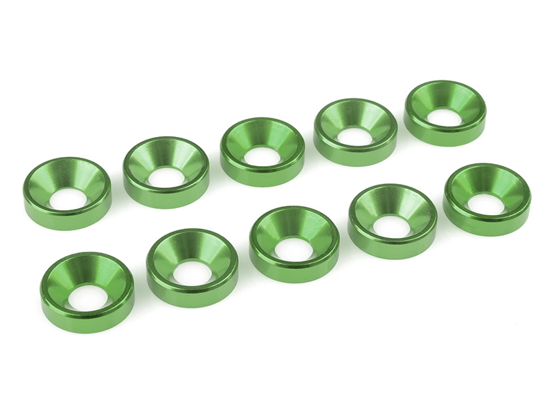 Hliníková podložka pod šroub M5 se zapuštěnou hranou. Zeleně eloxovaná. Balení obsahuje 10 ks.