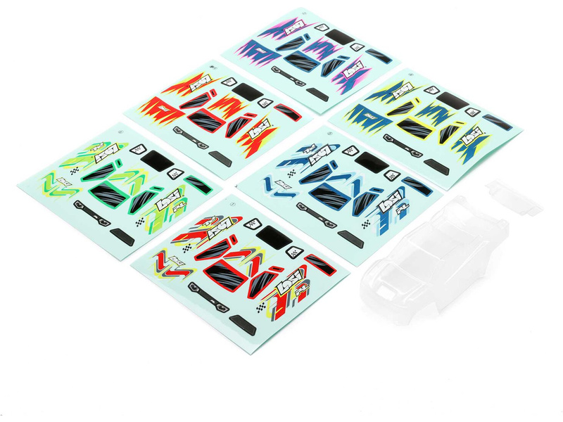 Balení obsahuje čirou karoserii, 6 sad samolepek s barevnými variantami.