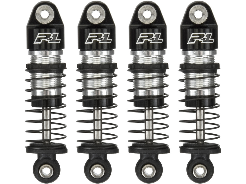 Pro-Line tlumič 1:24 Big Bore Scaler (4ks) - sada hliníkových CNC obráběných tlumičů pro RC modely auta SCX24, s nastavitelným předpětím pružin maticí. Dvojité O-kroužky. Hřídel tlumiče z leštěné oceli. Předem sestavené, stačí doplnit olej! Sada 4 volitelných tužších pružin v balení.