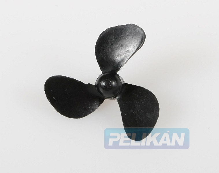 Třílistý pravotočivý lodní šroub pro montáž pod loď, plast plněný skelnými vlákny, závit M2.