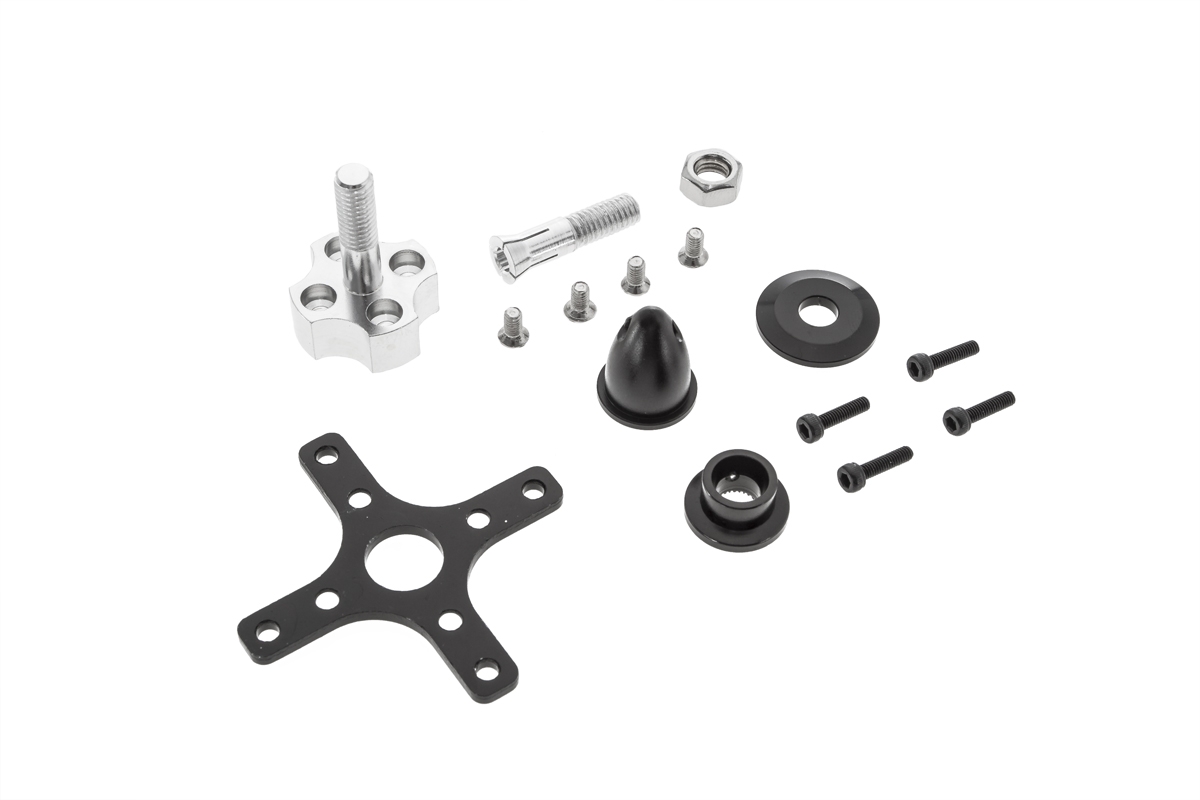 Sada pro zadní montáž s unašečem a upevňovacím křížem pro motory RAY G2 C3542 a C3548 (s hřídelí 5 mm). Obsahuje rovněž kleštinový unašeč pro hřídel 5,0 mm/M6 s kuželovou maticí.