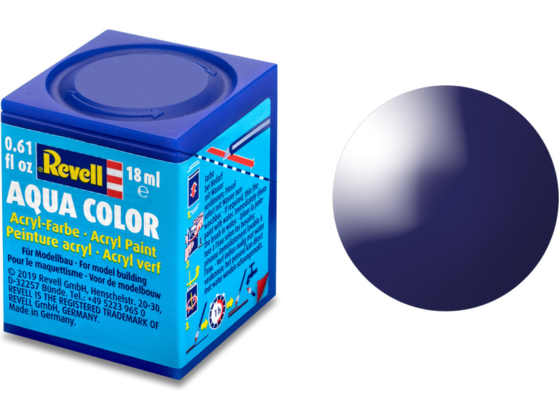 Akrylová barva Revell 36154 pro použití v modelářství. Odstín číslo 54 – noční modrá lesklá. Obsah 18 ml.