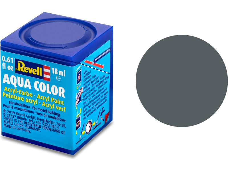 Akrylová barva Revell 36177 pro použití v modelářství. Odstín číslo 77 – prachově šedá matná. Obsah 18 ml.