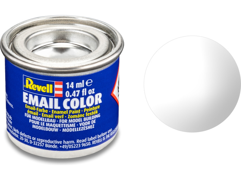 Syntetická (emailová) barva Revell 32101 pro použití v modelářství. Odstín číslo 1 – čirá lesklá. Obsah 14 ml.