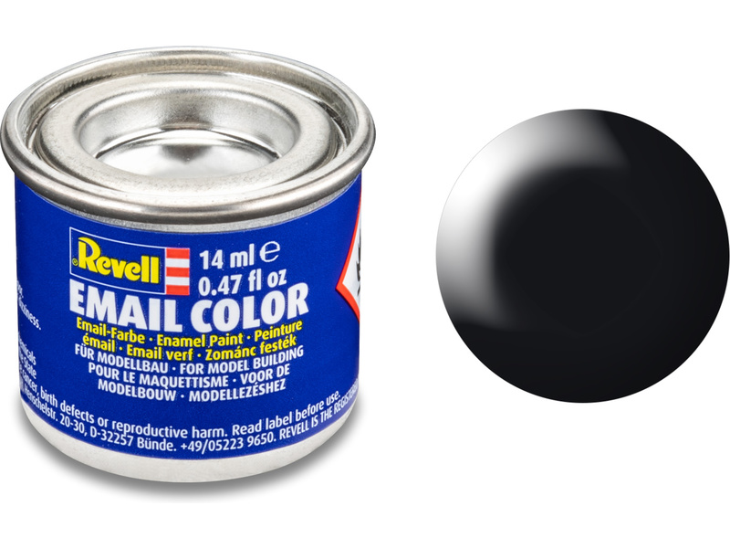 Syntetická (emailová) barva Revell 32302 pro použití v modelářství. Odstín číslo 302 – černá polomatná. Obsah 14 ml.
