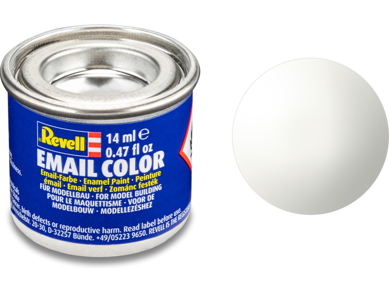 Syntetická (emailová) barva Revell 32104 pro použití v modelářství. Odstín číslo 4 – bílá lesklá. Obsah 14 ml.