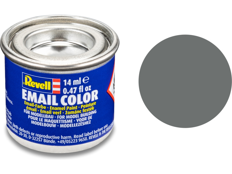 Syntetická (emailová) barva Revell 32147 pro použití v modelářství. Odstín číslo 47 – myší šedá matná. Obsah 14 ml.
