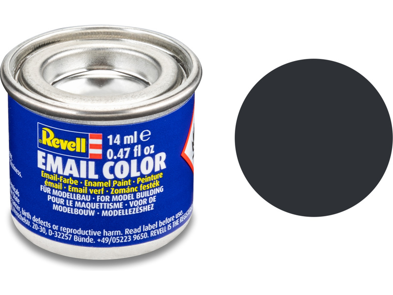 Syntetická (emailová) barva Revell 32109 pro použití v modelářství. Odstín číslo 9 – antracitová šedá matná. Obsah 14 ml.