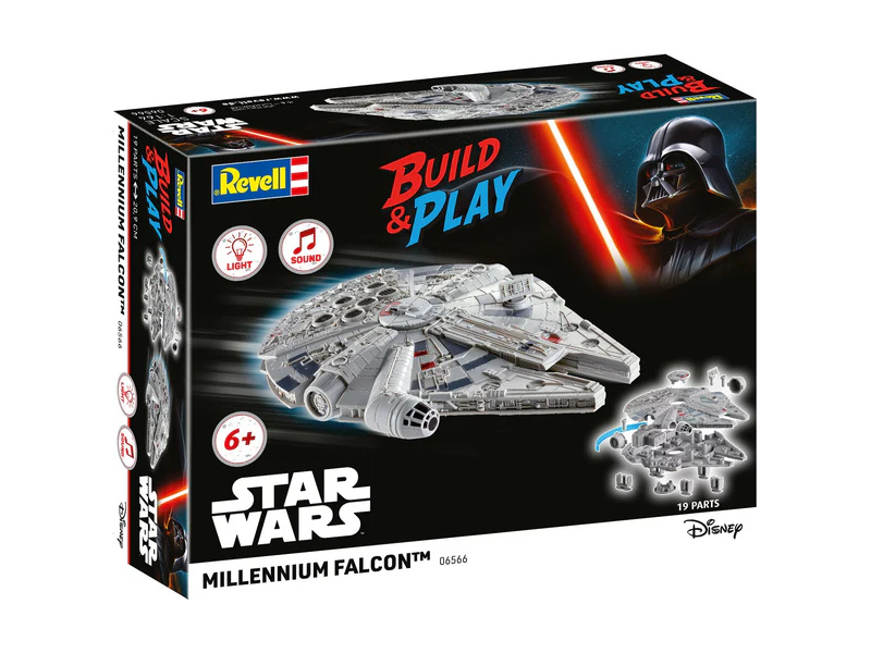 Plastikový model Revell 06566 – Star Wars Millennium Falcon v měřítku 1:164 ke slepení. Stavebnice obsahuje 19 dílků, obtížnost 1.