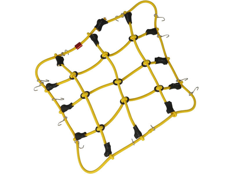 Robitronic Vám nabízí poutací síť s háčky pro RC modely aut. Pokud převážíte zavazadla nebo těžký náklad poutací síť je skvělý pomocník. Síť je pletena ze žluté kloboukové gumy 3 mm, rozměr je 150 mm x 120 mm. Na každé straně jsou umístěny 3 háčky pro připevnění.