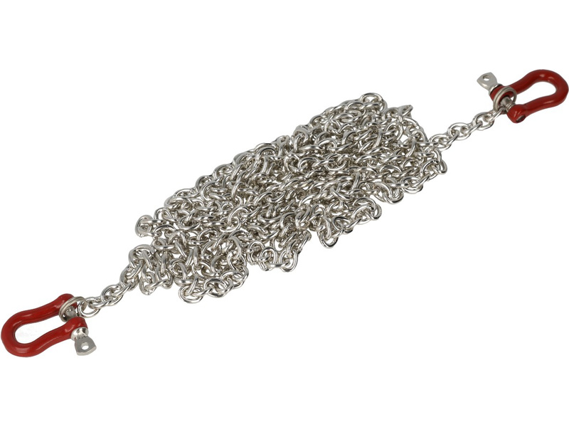 Robitronic Vám nabízí detailně zpracovanou maketu řetězu s oky pro RC modely aut. Řetěz má šířku 4 mm a délku 1100 mm, rozměry oka jsou 19 x 12 mm o průměru 3 mm. Řetěz je vyrobený z kovové slitiny o hmotnosti 43 g.