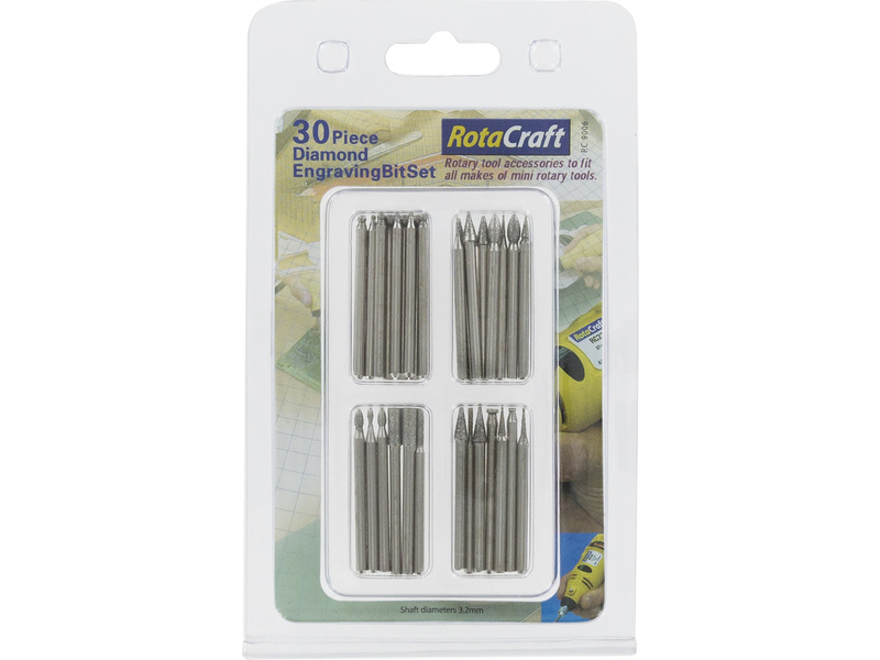 - Rotacraft diamantové gravírovací stopkové nástroje (sada 30ks)