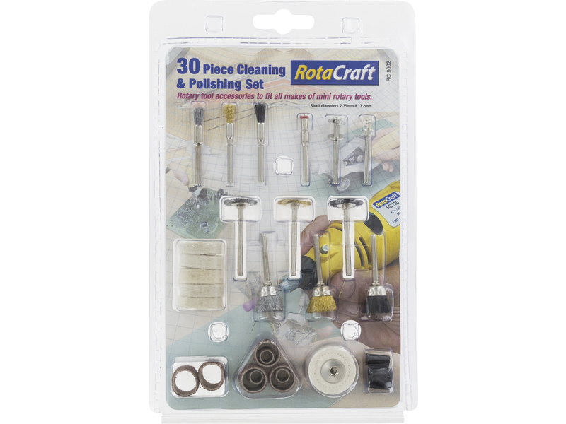Rotacraft leštící stopkové nástroje - sada 30ks, může být použita se všemi mini elekltrickými rotačními nástroji. Kompaktní sada příslušenství, které pokrývají širokou škálu činností v profi i hobby práci. Průměr hřídele je 2,35mm a 3,2mm.