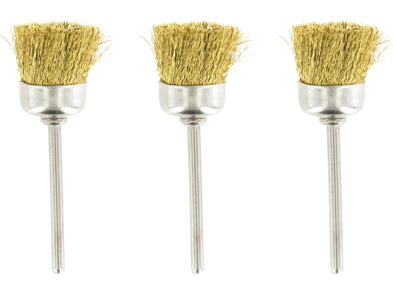 Rotacraft stopkový drátěný kartáč mosazný (3ks v balení) je určen pro šetrné čištění kovu, plastu, skla, keramiky, kamene, opravy apod. Stopka do kleštiny 2,35mm, průměr kotouče cca 15mm.