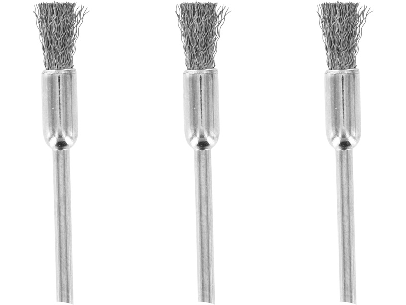 Rotacraft stopkový drátěný kartáč ocelový (3ks v balení) je určen pro šetrné čištění kovu, plastu, skla, keramiky, kamene, opravy apod. Stopka do kleštiny 2,35mm, průměr cca 5mm.